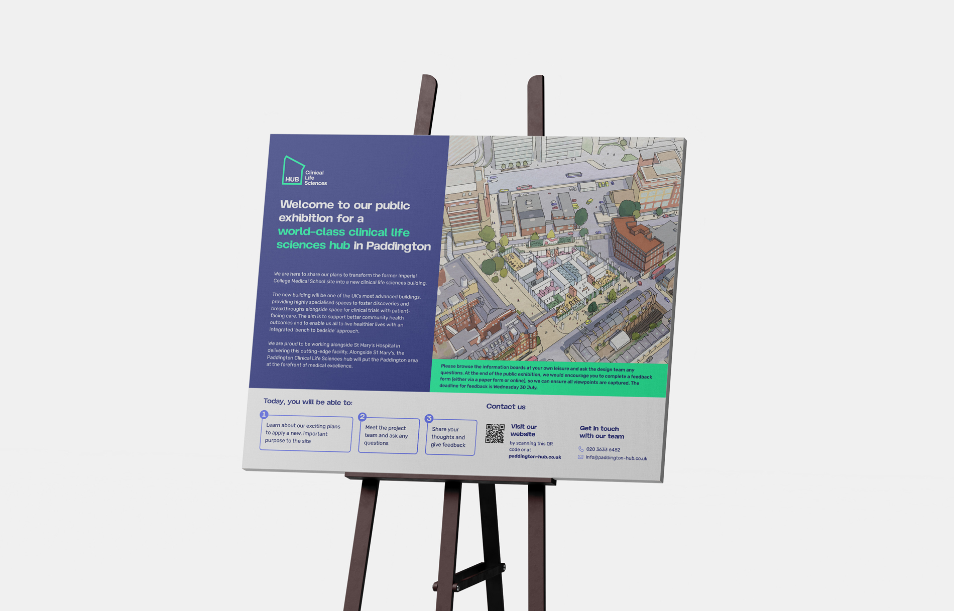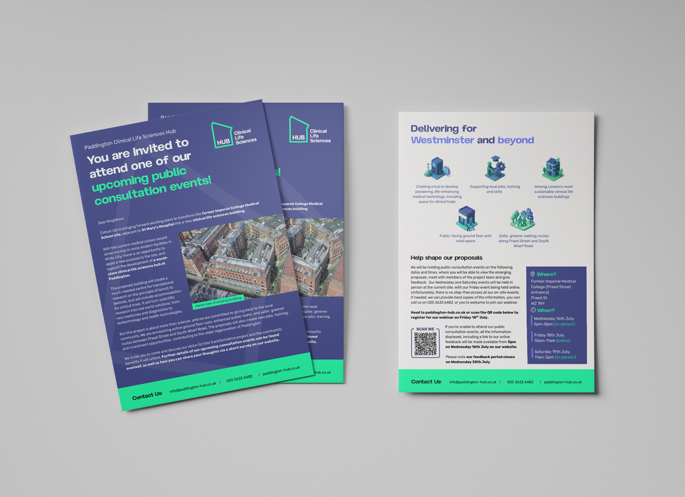 We developed a series of digital and print assets including a consultation website, exhibition boards, event invitations, and a social media templates — all aligned with the brand’s visual and tonal principles.